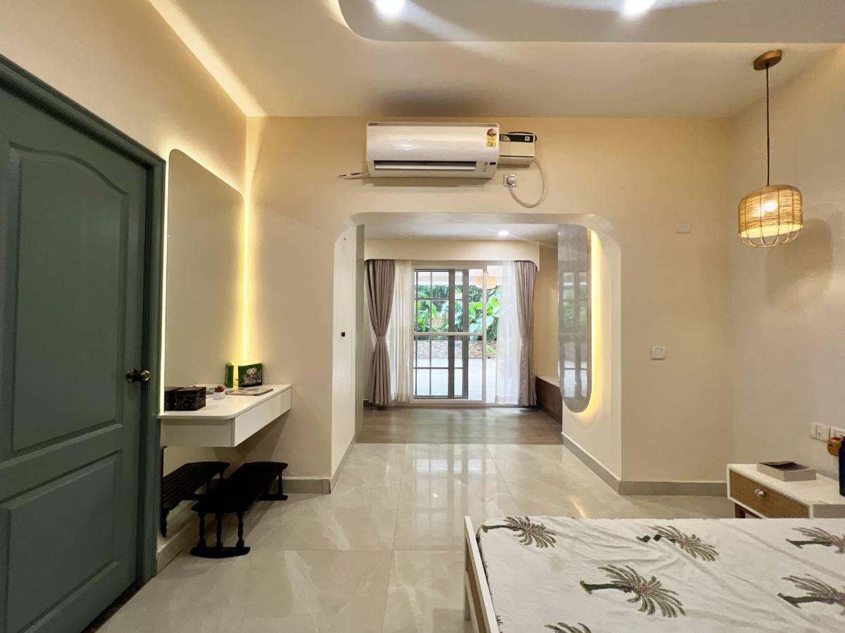The core vision was to maximize space and light in a ground-floor unit. Our solution involved significant structural and layout changes, going far beyond a cosmetic update. We strategically extended two bedrooms and, most notably, transformed the living area into a grand double-room space to create a sense of awe and volume. To carve out a dedicated study nook without compromising the open feel, we used a combination of new walls, UPVC frames, and sound-proofed cement board partitions, ensuring a quiet and focused workspace.
