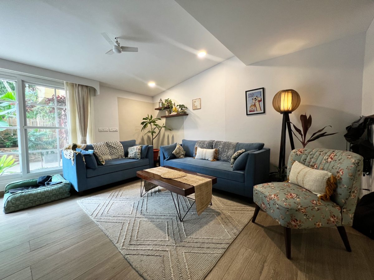 The Indoor-Outdoor Connection: Courtyard & Balcony: The jewel of this project is the private courtyard, accessible from the living areas, creating a tranquil green retreat. The sitting balcony offers another intimate space to enjoy Bangalore’s weather, blurring the lines between inside and out.